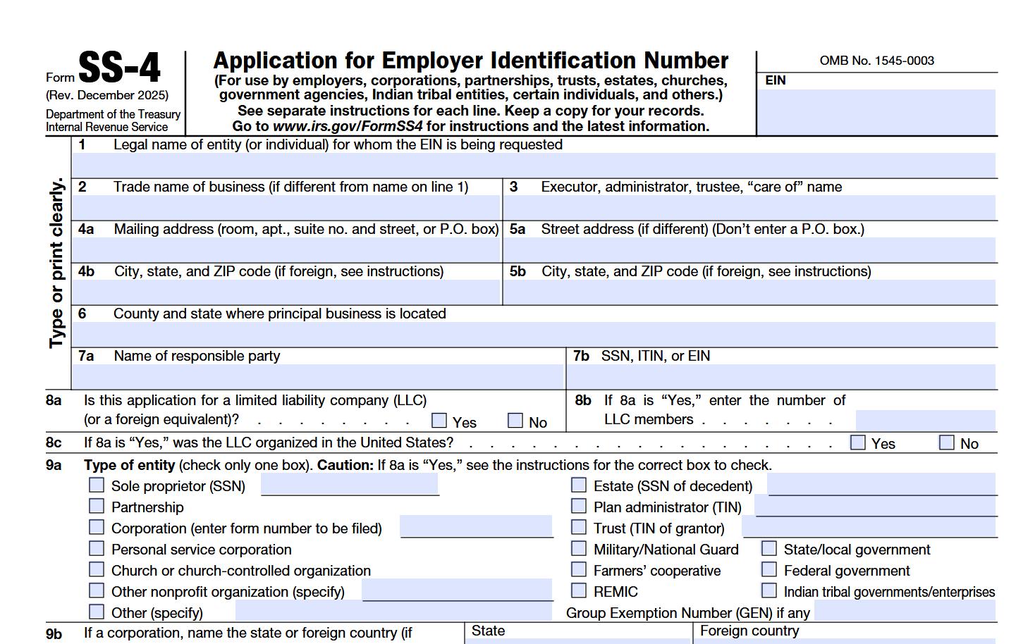 Starting a business involves a lot of paperwork, but one document plays a central role in getting everything else up and running: Form SS-4, Application for Employer Identification Number (EIN). The IRS uses this form to collect the details it needs before issuing an Employer Identification Number, or EIN. That number becomes your business’s unique tax ID.